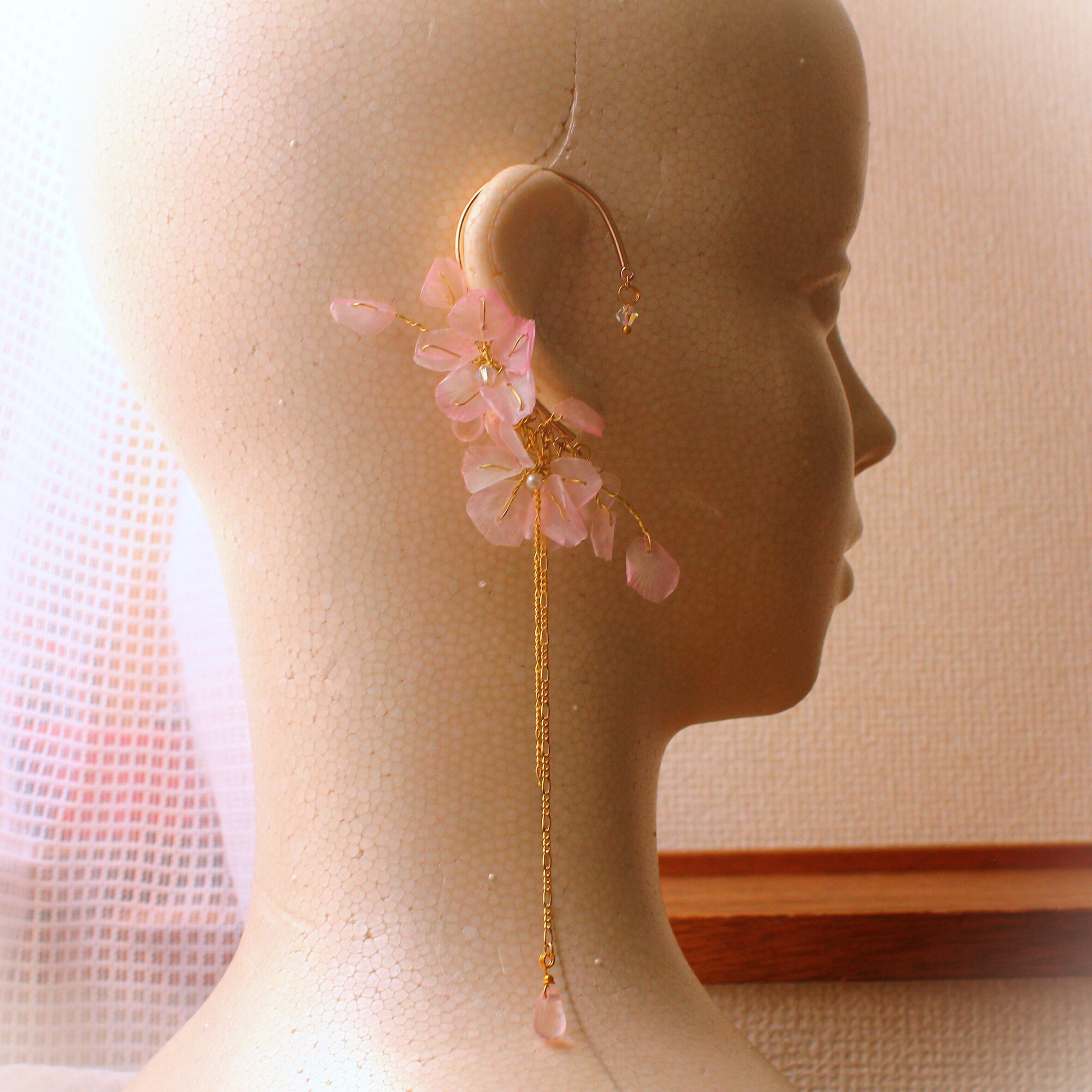 **華やかな桜モチーフのウロコ製イヤーフックでおしゃれを楽しむ!**