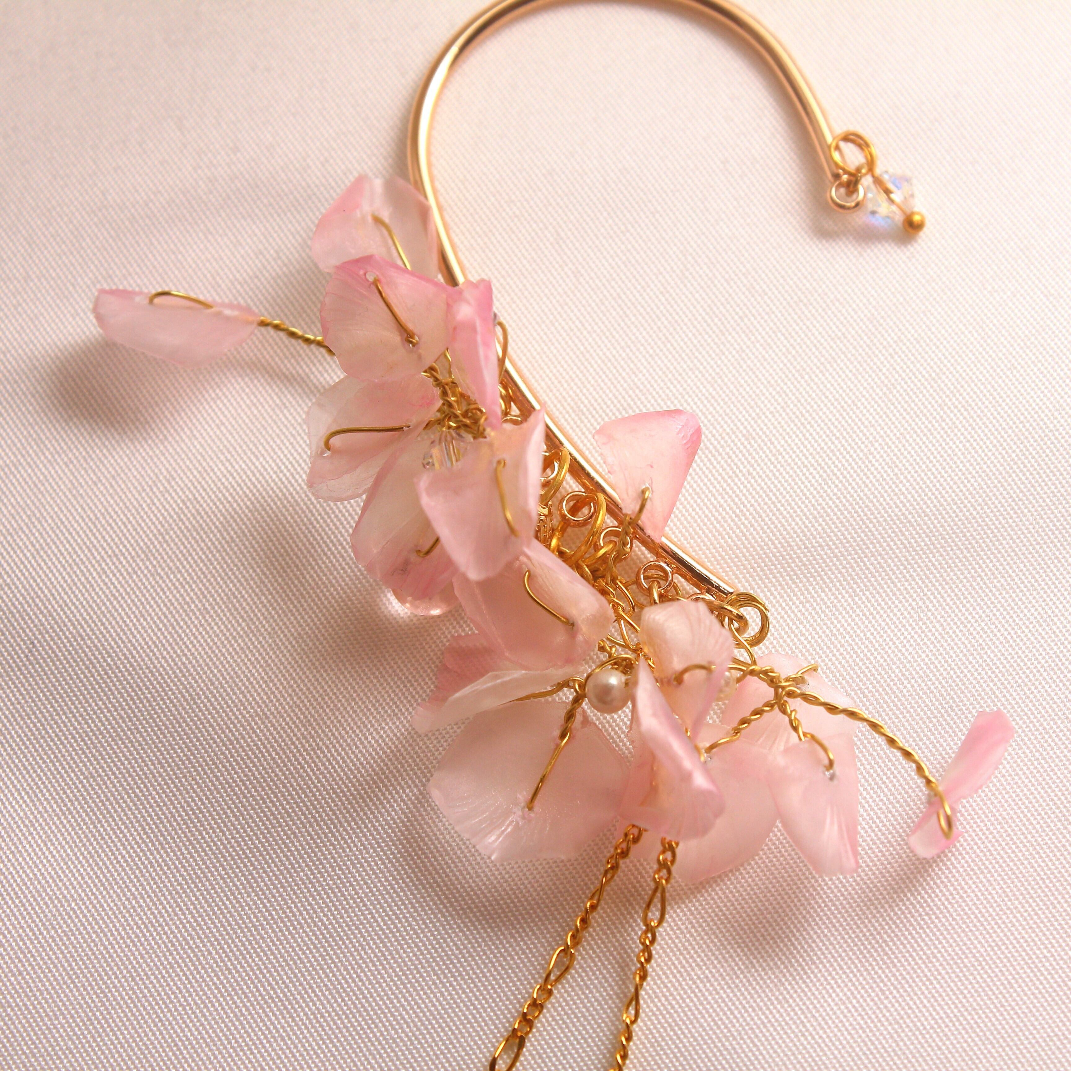 桜モチーフ イヤーフック 片耳用 魚のうろこを使用した 海のアクセサリー ウロコのイヤーフック ピンク 桜 鯛の鱗 うろこ サステナブル 桜モチーフ ear hook お花 花びら リアル 華やか | 革小物のオンラインショップ Leather Shop キュイール