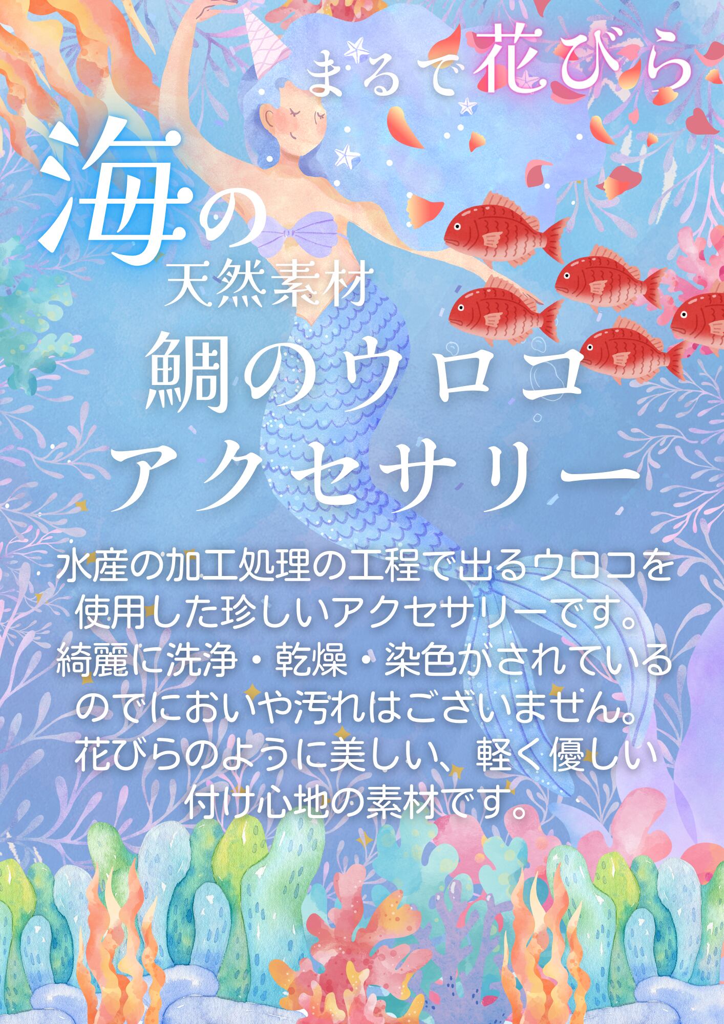 魚のうろこは天然素材のため、同じデザインでも作品ひとつひとつの表情がわずかに異なります。天然素材の醍醐味とお楽しみ頂けましたら幸いです。
