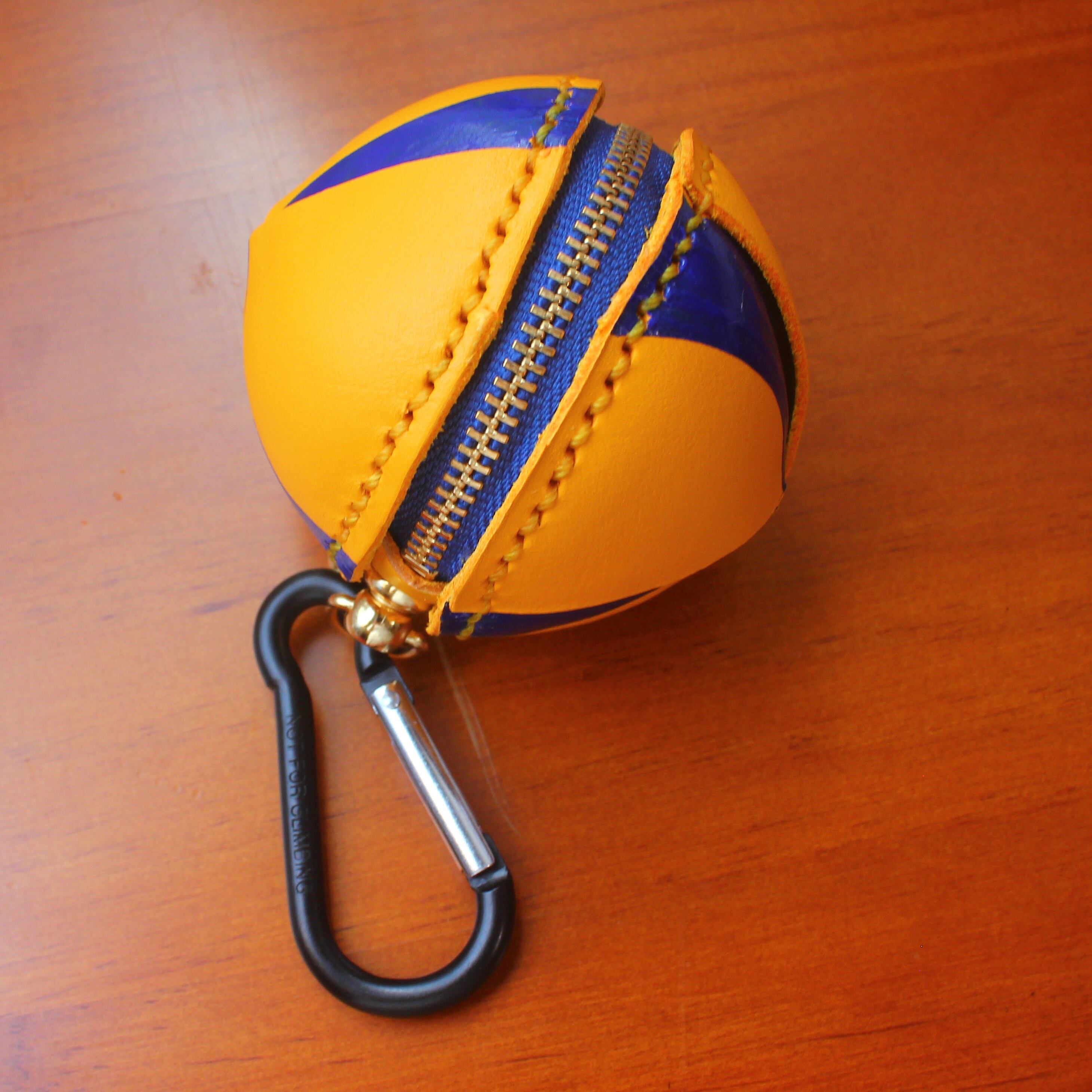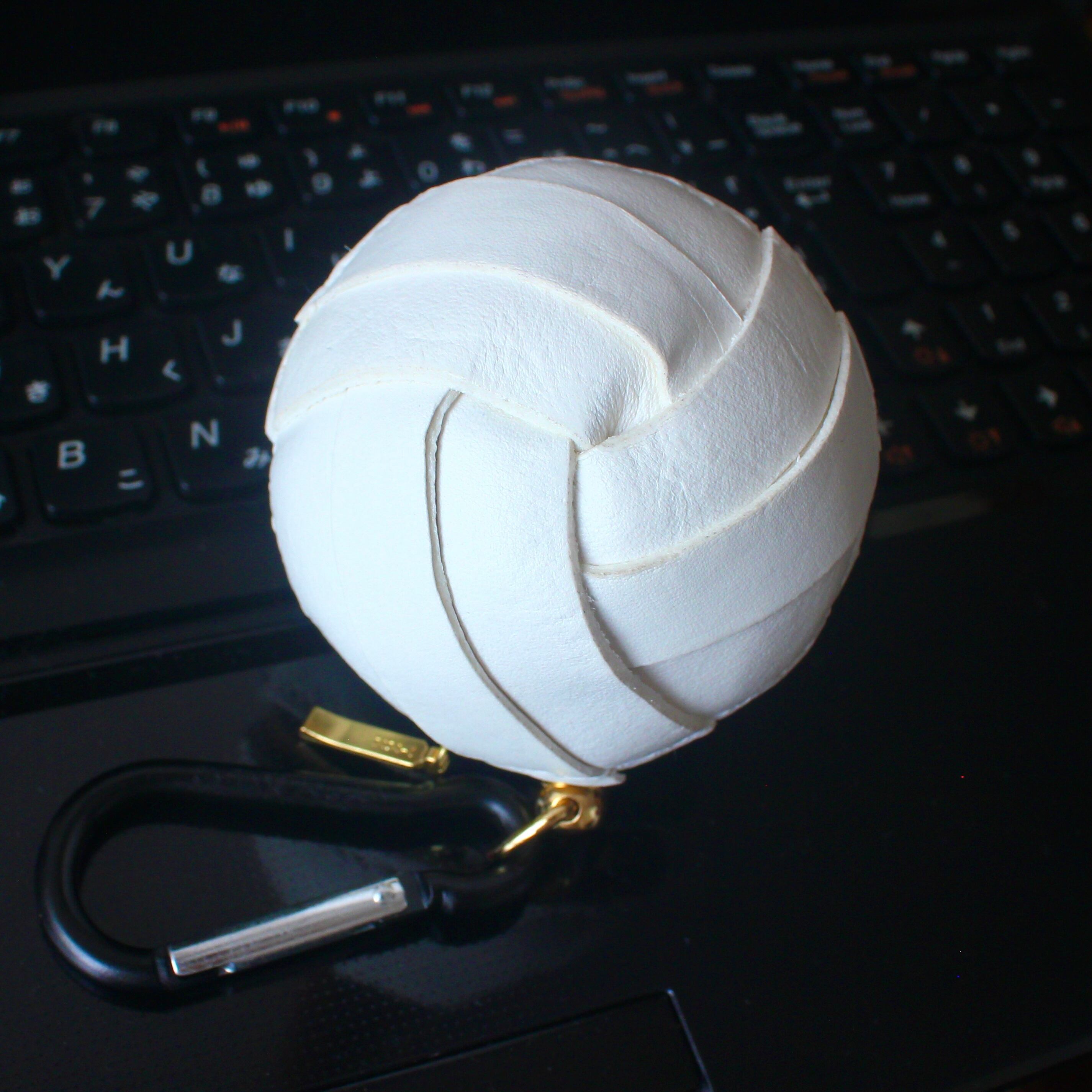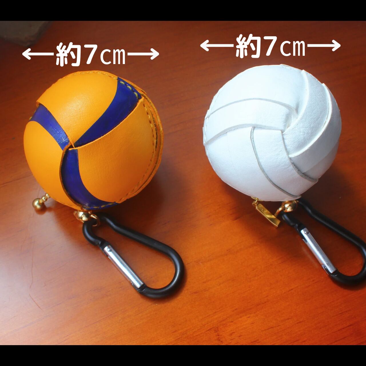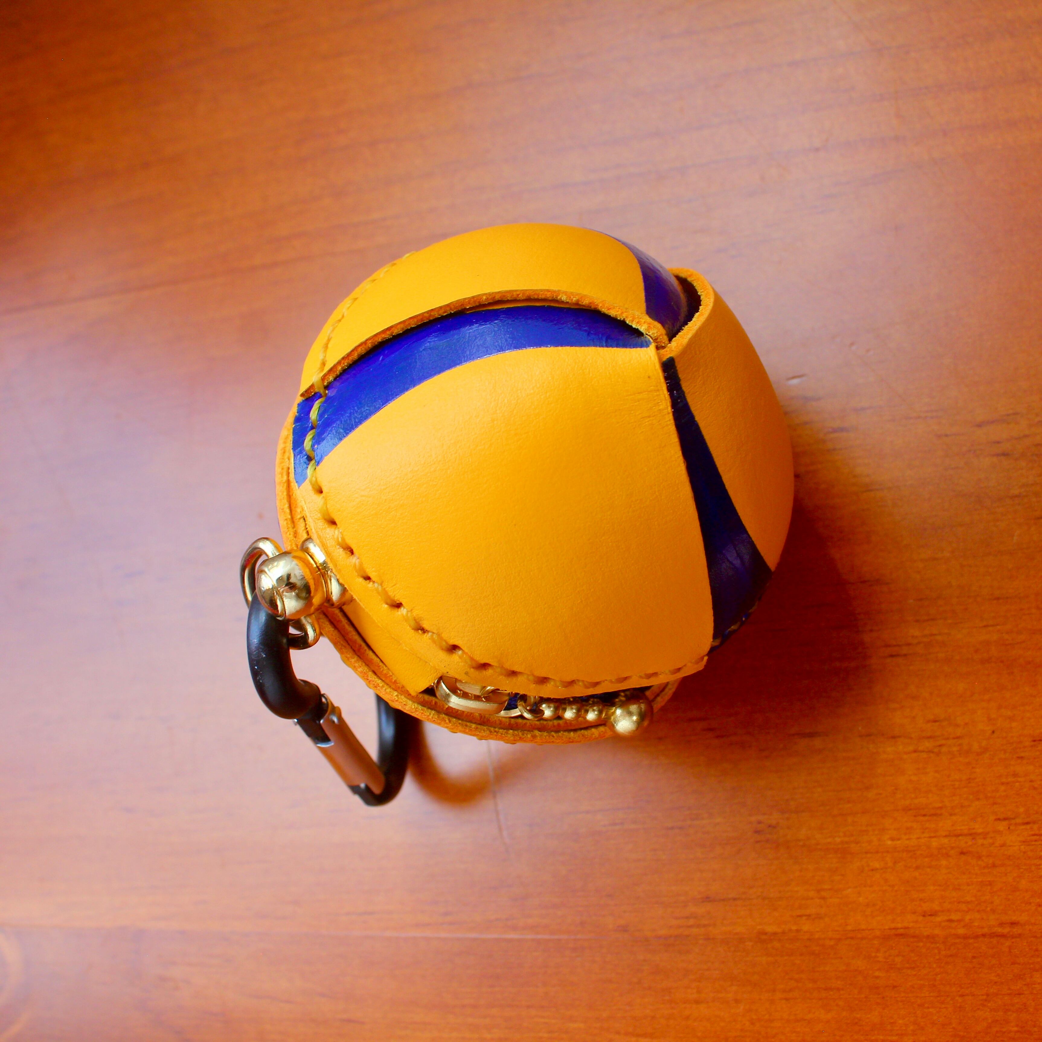 直径7cmの手のひらサイズで、ころんと可愛い立体フォルムがチャームポイントの、バレーボール型本革ポーチです。