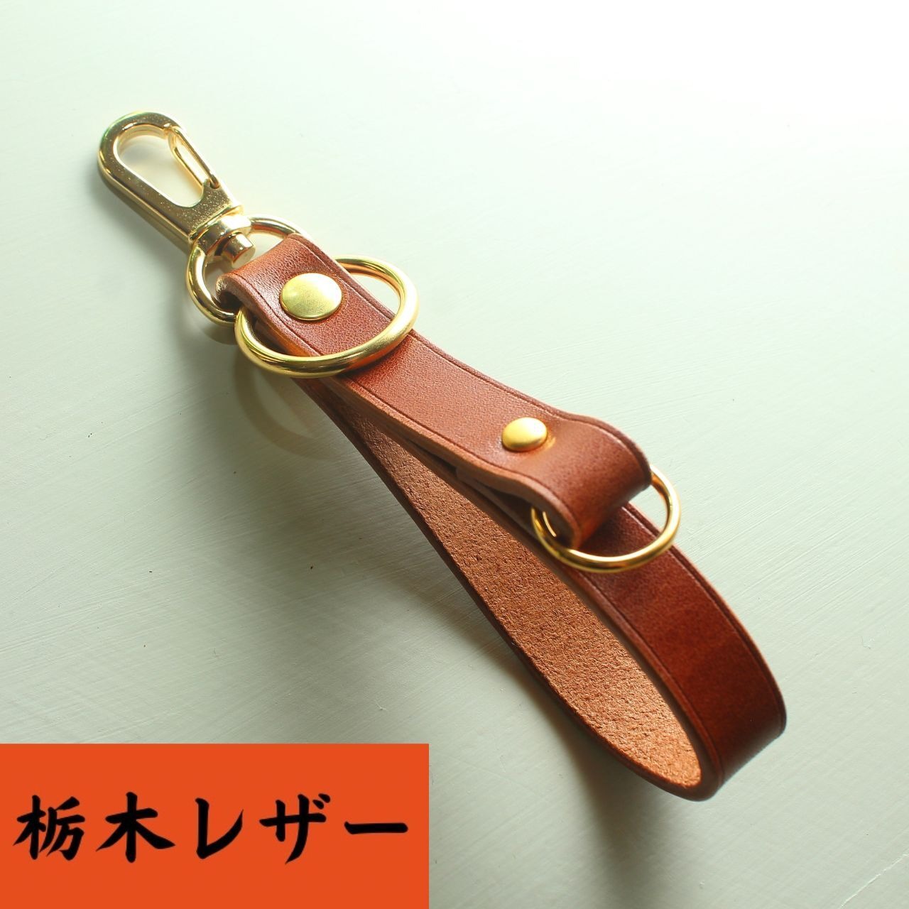 【栃木レザー使用】ストラップ キーホルダー キャメルブラウン レザー 牛革