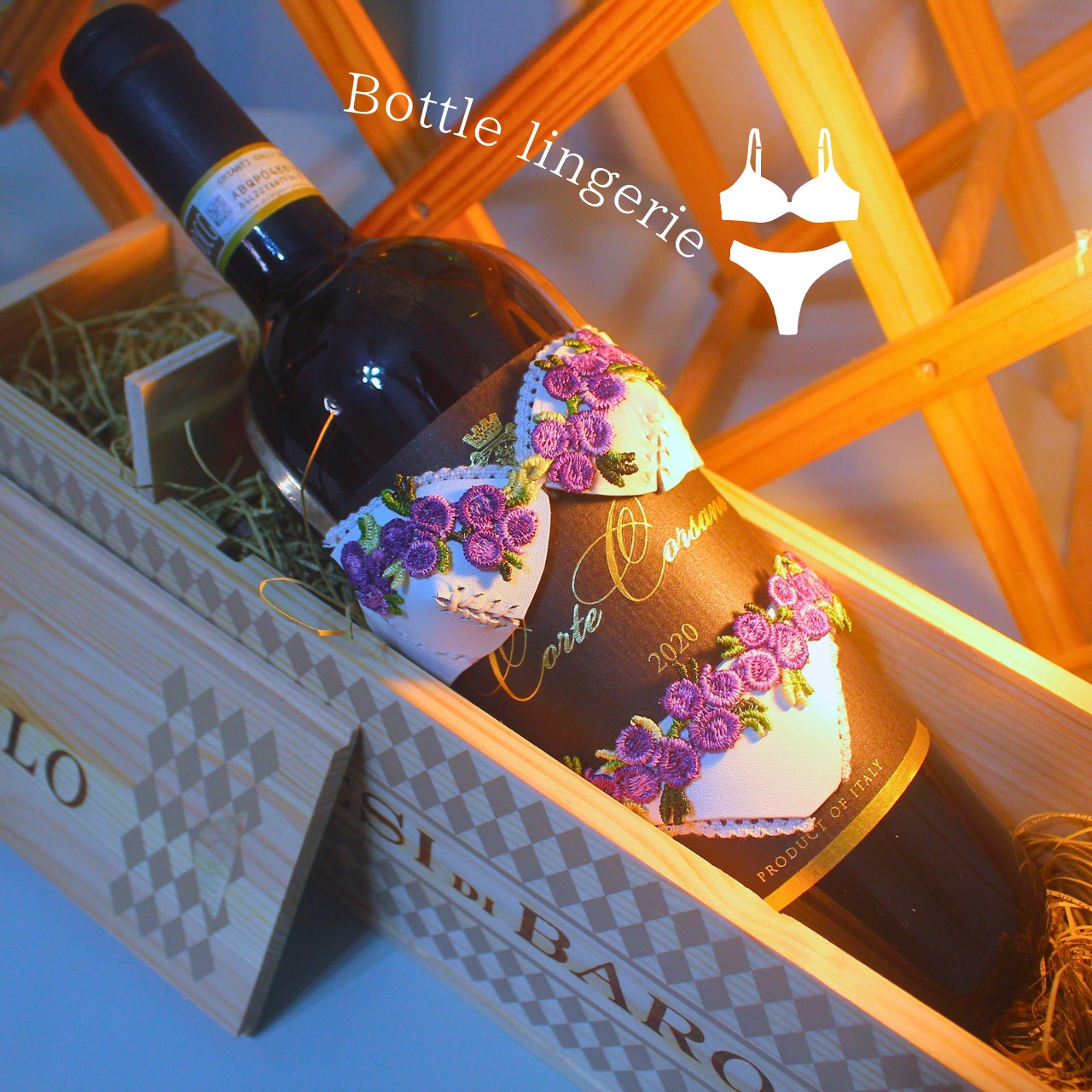 本革製のリアルで可愛いランジェリーがボトルを華やかに演出します!