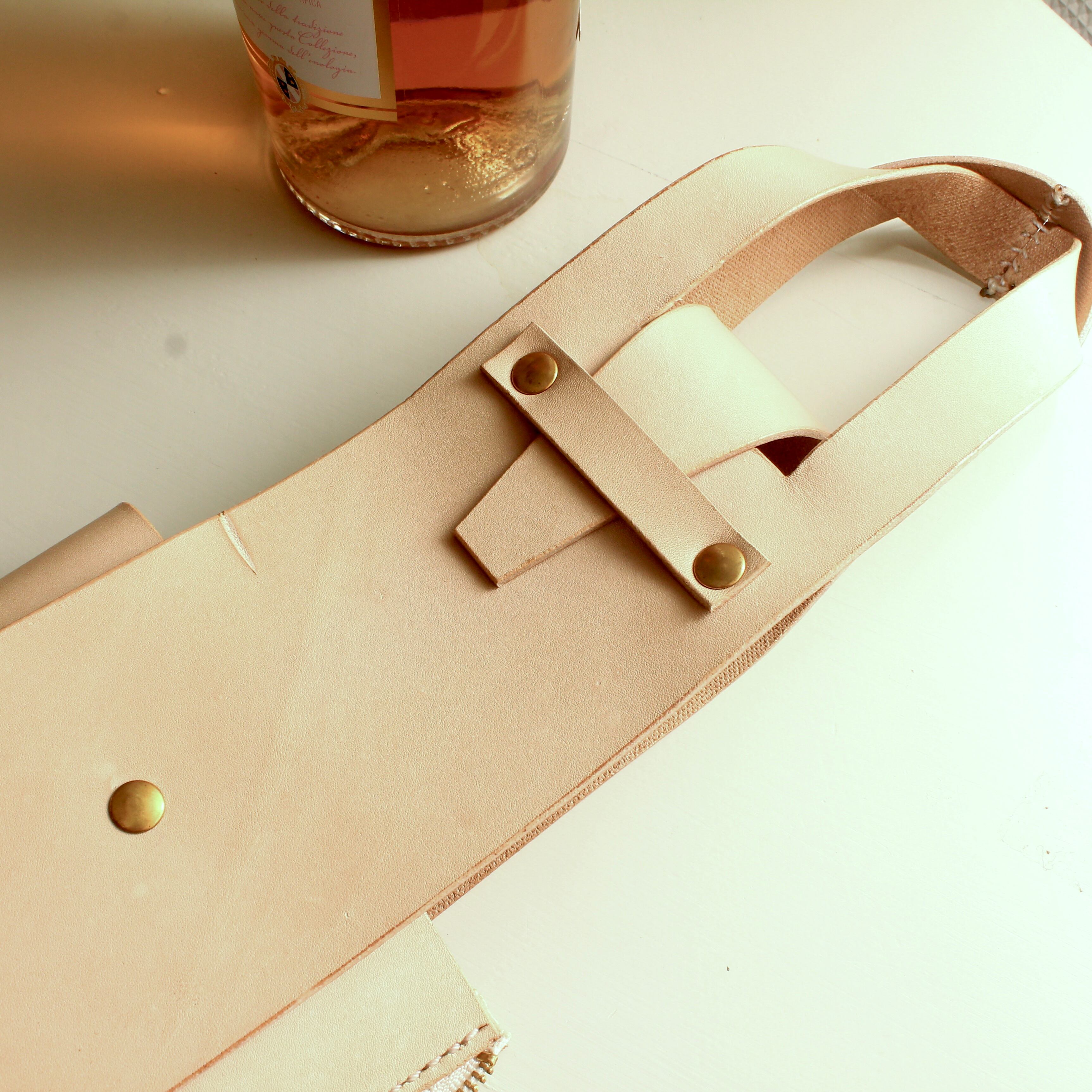 お酒などのボトルがピッタリのレザー製バッグです。