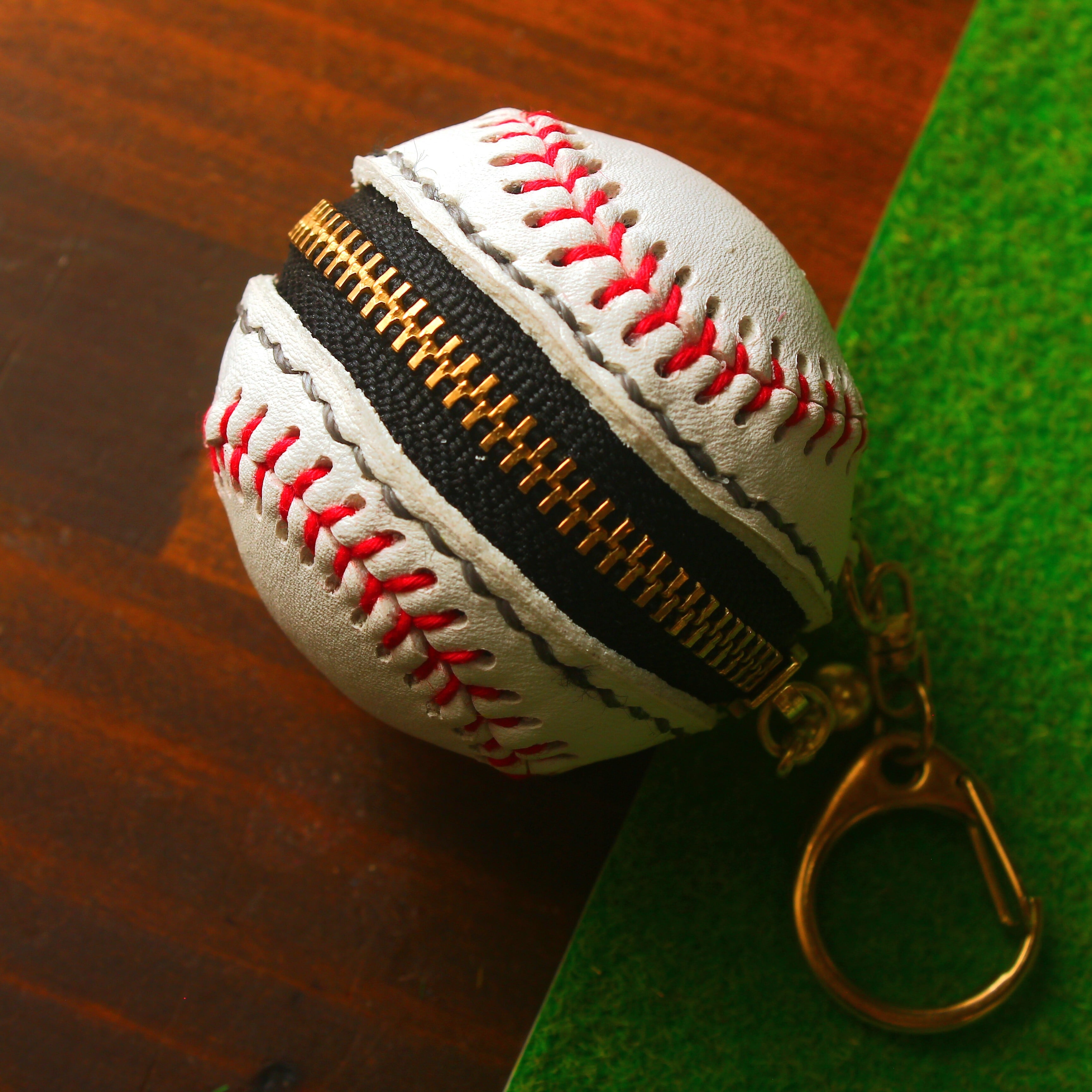 野球ボール 型 ポーチ ミニサイズ 直径約5cm【黒ファスナー 】姫路レザー リアルな野球ボール の 小さなポーチ 鞄のアクセントや 野球好きさんへのプレゼントに!キーホルダー付き 送料無料 【刻印オプションあり】baseball | 革小物のオンラインショップ Leather Shop キュイール