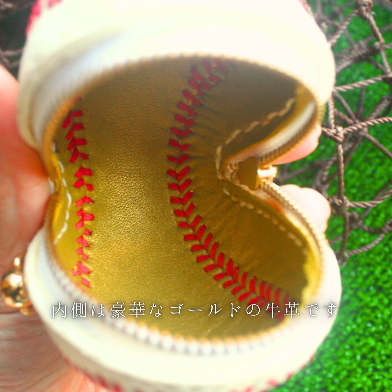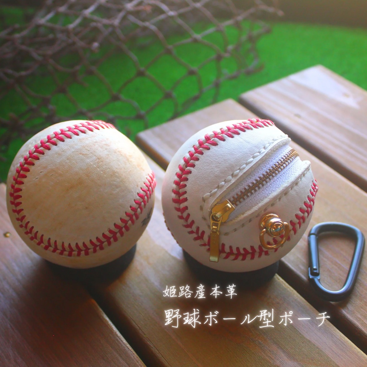 姫路産の本革を使用し野球ボールの形を再現した、立体感のある小物入れです。